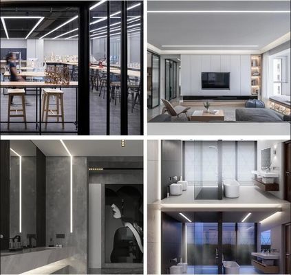 ระบบโปรไฟล์อลูมิเนียม extruded สําหรับแผ่นแสง LED ทําให้การออกแบบของอุปกรณ์แสงของขนาดที่ต้องการและรูปร่างโปรไฟล์แขวนและติดบนผิวสามารถติดตั้งไฟ RGB และไฟ LED วันเย็นและอบอุ่นได้และความเข้มของแสงสามารถปรับได้